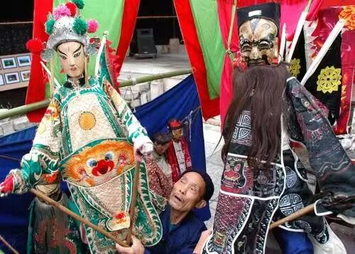 属杖头傀儡戏,约200年前由湖南辰溪传入,流传于花桥、坪山等地。木偶高约1.2米,木雕头像、竹制躯干配精美服饰;艺人一手持主杆控头部,一手操侧杆做肢体动作,唱腔融合石阡方言与地方戏曲,伴奏有锣鼓、二胡等,代表剧目《三顾茅庐》《穆桂英大破天门阵》 。